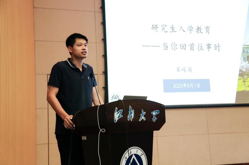 梁峻阁围绕研究生科研道德和培养计划进行专题教育。他详细介绍了公司丰富的学术资源和学科平台,强调了在研究生阶段积极参与专业实践和科研工作的重要性,鼓励新生找到适合自己的学术节奏。此外,他还详细介绍了导师双选、培养阶段时间节点等重要事项,为新生提供了清晰的学术规划和指引。