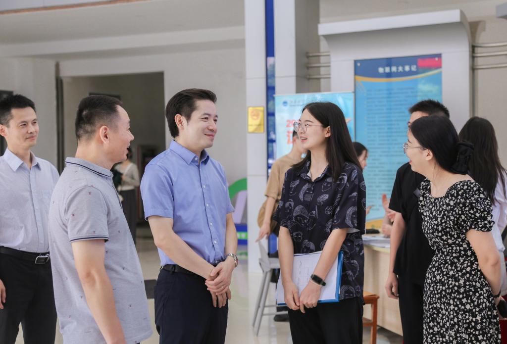 公司党委常委、副董事长马鑫等校院领导与研究生新生进行交谈