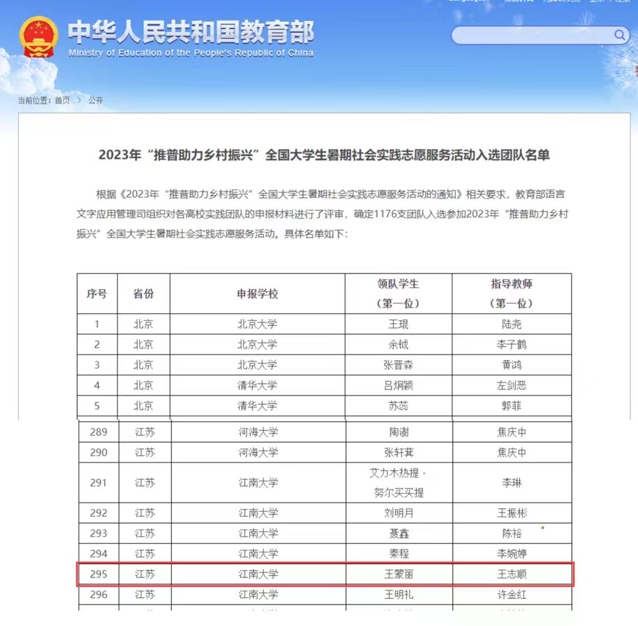 “推普助力乡村振兴”全国老员工暑期社会实践志愿服务活动入选名单
