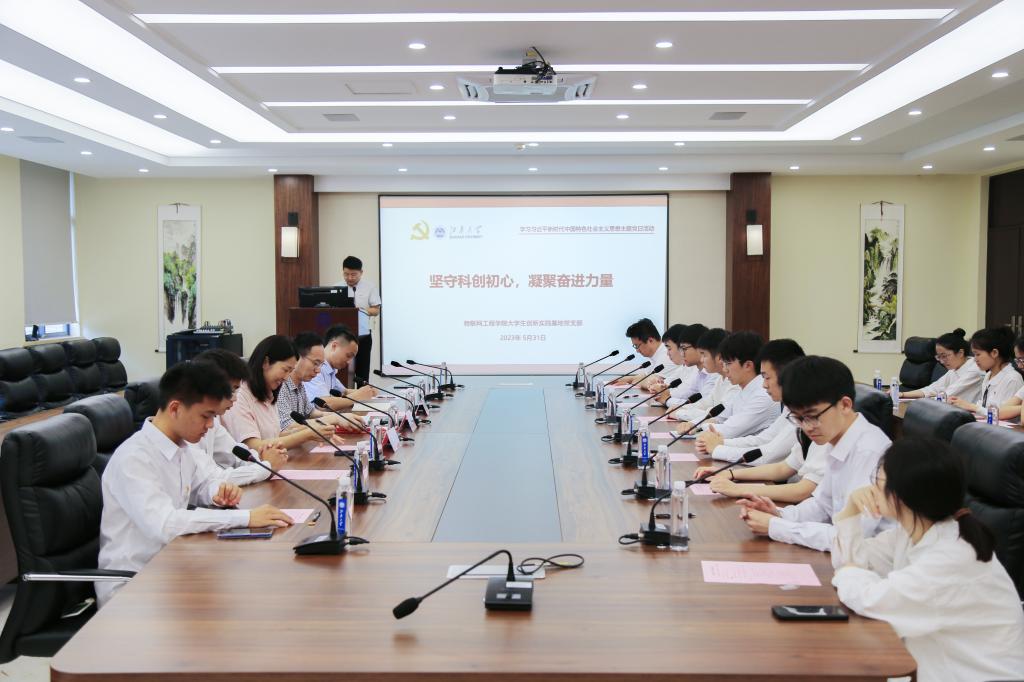 为深入开展学习贯彻习近平新时代中国特色社会主义思想主题教育,5月31日下午,williamhill老员工创新实践基地党支部(以下简称“大创党支部”)在公司B222开展“坚守科创初心,凝聚奋进力量”主题党日活动。williamhill威廉希尔党委常委、副董事长堵国成,公司党委书记耿向阳,williamhill经理、大创党支部书记栾小丽,本科生辅导员曾磊以及大创党支部全体师生党员参加活动。活动由支部纪检委员、研究生辅导员王志顺主持。
