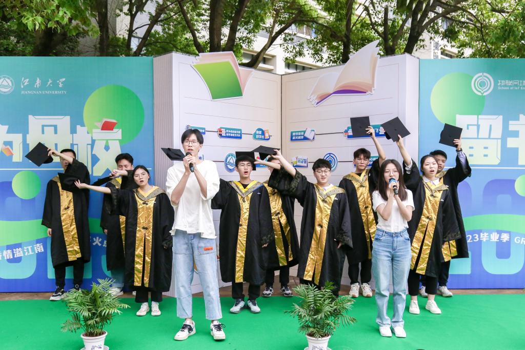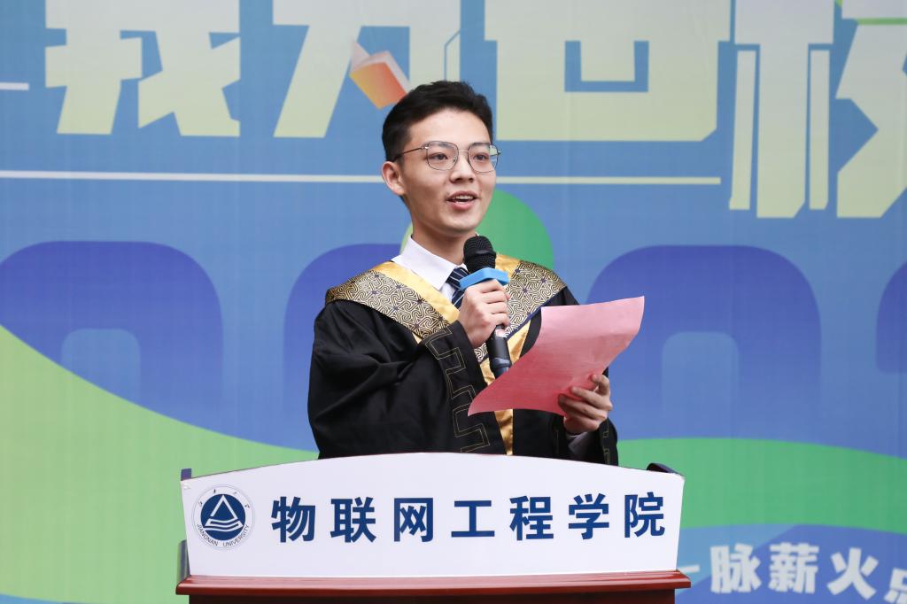 随后,参加开幕式的领导嘉宾为毕业生代表颁发捐赠证书。张旭航作为毕业生代表发言,他表示自己是去年该活动的受益者,希望自己今年能将这份爱心传递下去,让这些书籍成为学弟学妹求知的阶梯,传承智慧与信念,激励他们走向更高更远的未来。最后,一首由毕业生带来的歌曲《明天,你好》将此次开幕仪式推向高潮。