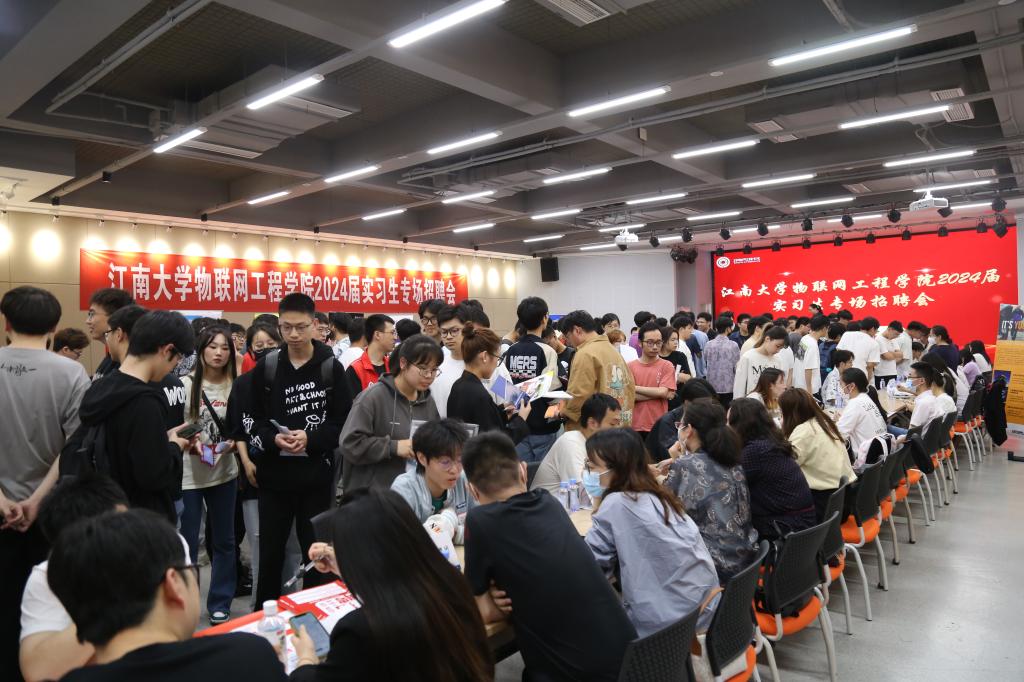 本次招聘会吸引了卡特彼勒、博创、威孚高科、上能电气、三一重机、卓胜微、中船重工奥蓝托、造梦者等22家优质企业参会,为2024届毕业生提供实习岗位100余个,需求人数达500+。招聘岗位涵盖电气工程、电子信息、自动控制、集成电路、软件工程等专业领域,与公司所有专业高度匹配。通过实习生招聘双选,加强企业与员工的互动交流,为2024届毕业生招聘提前锁定人才。招聘会现场人头攒动、秩序井然,吸引了500余名物联学子前来应聘。