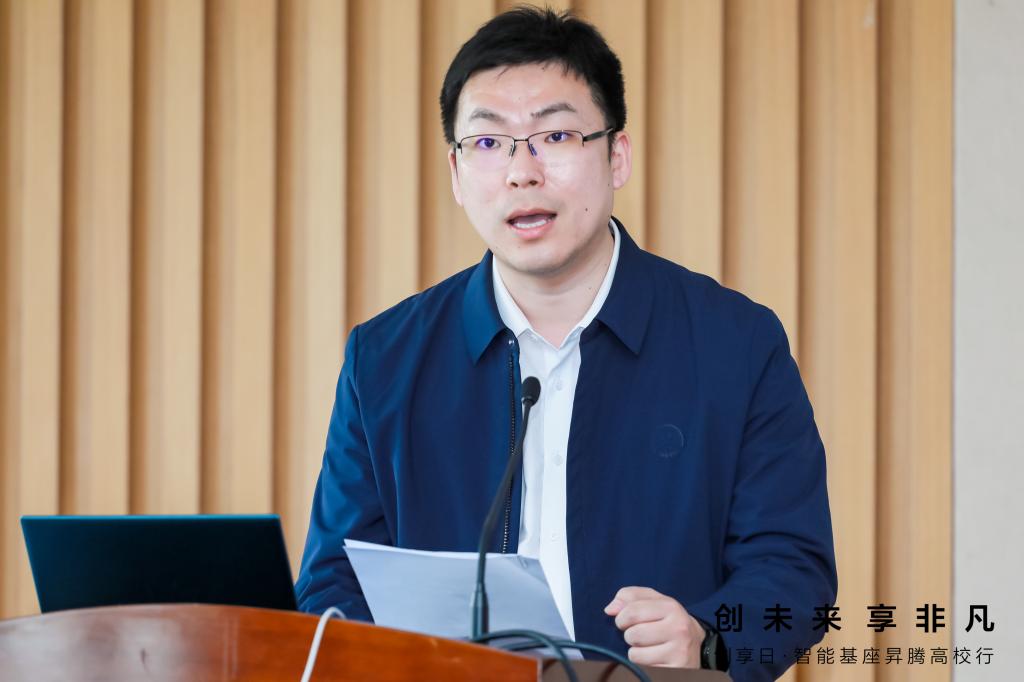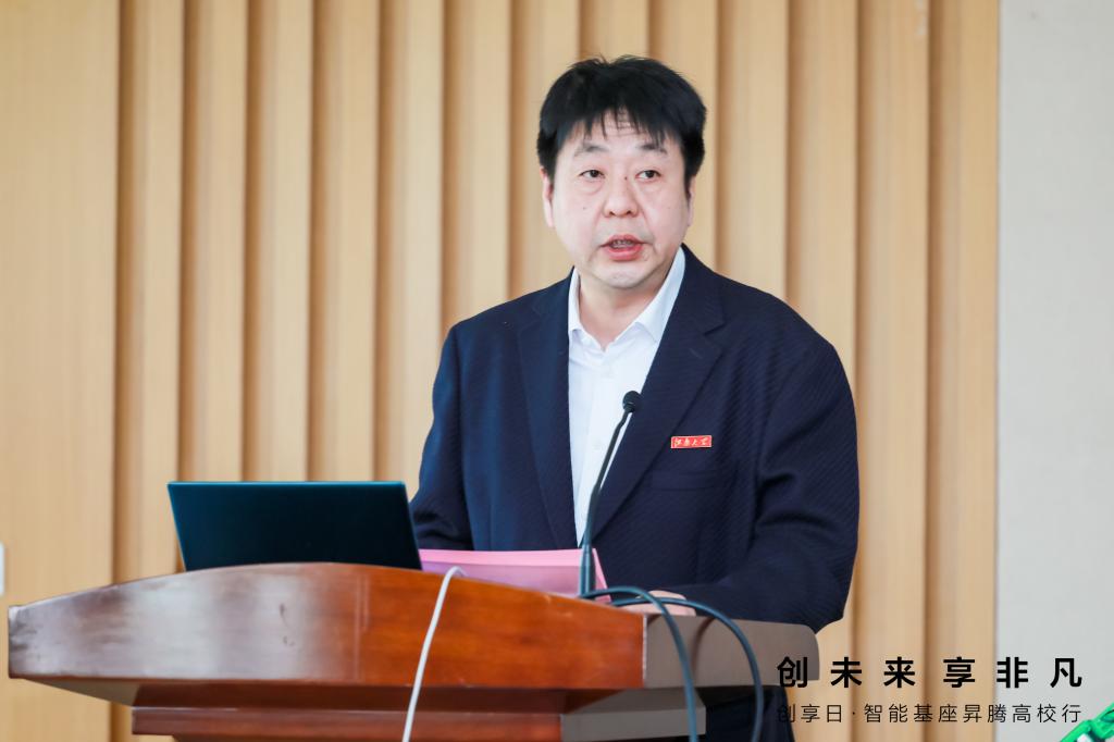 倪松涛代表公司致辞。他介绍了“智能基座”产教融合协同育人项目的背景和合作内容,肯定了williamhill威廉希尔-华为“智能基座”协同育人基地项目在过去的两年内取得的多项成果,并表示公司将持续深化产教融合协同育人,创新优化人才生态链,进一步推动双方在人才培养、课程建设、创新实践等方面更深层次、更广领域、更高水平的合作。