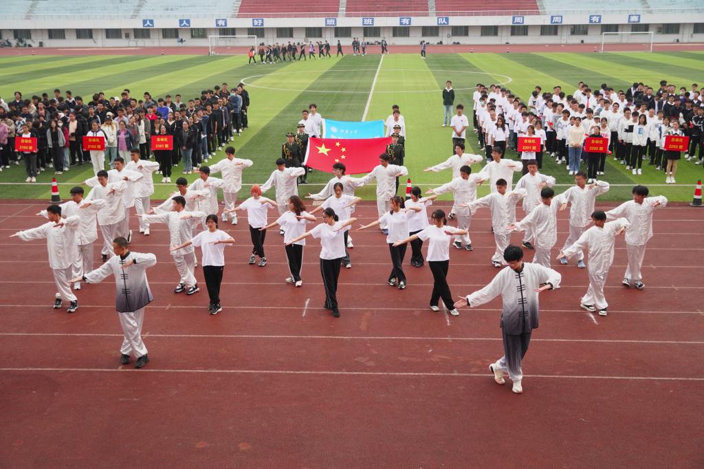 开幕式伊始,伴随着雄壮的《运动员进行曲》,国旗方阵、院旗方阵、班级方阵迈着矫健的步伐有序入场。方阵喊着响亮的口号进入大家的视野,独具特色的队列、铿锵有力的步伐、整齐划一的动作都充分展示出物联学子朝气蓬勃的青春力量和逐梦前行的校园风采。紧接着,员工代表带来精彩的戏曲广播操表演和歌曲表演,以青春的名义表达对党和国家的热爱与赞美,唱响物联学子的责任与担当。