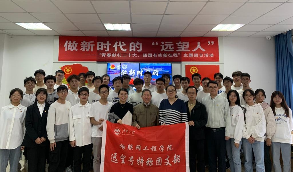 致敬与寄托。团支部书记李婉婷代表“远望号”特称团支部为刘仁生送上一盆绿植,向老一辈远望人致敬,祝刘老福泰安康。刘仁生向同学们赠书,寄托远望,激励新时代青年不忘初心、破浪前行。