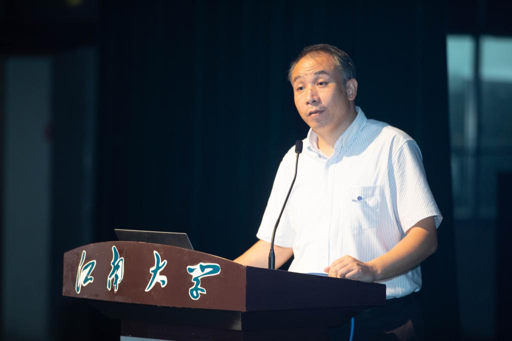 在庄严雄壮的国歌声中,开学典礼正式拉开序幕。在热烈的掌声中,程捷音代表全院师生对2022级新生的到来表示欢迎,并为大家的江南生活送出了三个祝愿:一是愿新生们家国天下,壮志豪情。行动是青年最有效的磨砺,她鼓励大家在百年变局和世纪疫情的不平凡时刻,用实际行动诠释“使命”二字的含义。二是愿大家求真求知,青春无悔。奋斗是青春最亮丽的底色,她以控制科学与工程专业万海英同学“本硕博”九年的江南求学时光和层出不穷的学霸宿舍为例,期望大家在知识的海洋里尽情遨游、攻坚克难,获得真知、增长才干。三是愿同学们心中有爱,身心健康。她用自己工作20余年的经历勉励大家养成良好的生活习惯,用健康的体魄支撑自己的学业和事业,用阳光的心态在追梦的路上勇敢拼搏。