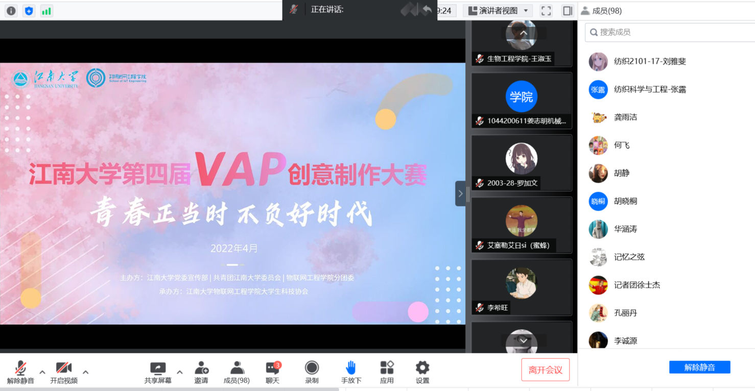 近日,为喜迎党的二十大,携手奋进新征程,在五四青年节来临之际,由公司党委宣传部、共青团williamhill威廉希尔委员会、williamhill联合举办的“青春正当时,不负好时代”williamhill威廉希尔第四届VAP创意制作大赛决赛在线上成功举行。公司党委副书记、副经理孔丽丹,公司党委宣传部网络思政与宣传科科长张铁根,williamhill分团委书记洪筱,williamhill辅导员王志顺、王雪冰、屈跃宽、沈滔出席本次活动并担任评委。