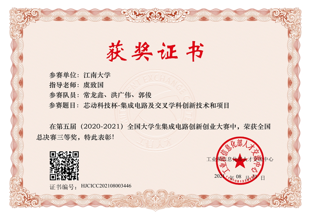 第五届全国老员工集成电路创新创业大赛获奖证书
