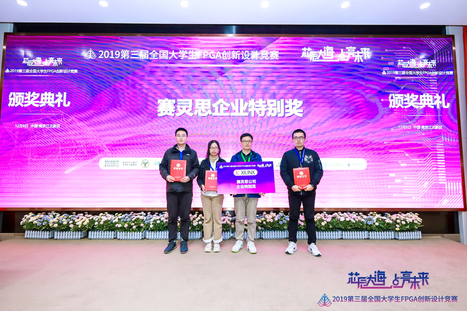 由公司williamhill柴志雷老师指导的参赛队伍代表williamhill威廉希尔参加了该赛事,参赛队员由williamhill研究生张新伟、李康、郁龚健、刘家航组成。经过激烈竞争,参赛作品“基于FPGA的类脑计算平台”斩获特等奖,并获得全球最大的FPGA提供商Xilinx的企业特别奖。