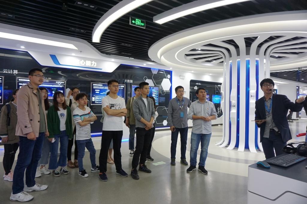 仪式结束后,吴垚带领江苏移动网络部无锡中心党支部成员参观了物联网老员工创新实践基地,实地介绍基地发展及运行情况。随后,双方支部成员一同前往中国移动无锡分公司物联网展厅进行参观。展厅负责人展示了云计算、大数据、VR、AI、智慧政务、智能制造、V2X以及远程驾驶等最新科技,使物联网老员工创新实践基地党支部师生深入了解了移动公司在智能领域的发展。参观结束后,双方在移动公司会议室进行了简短的座谈会议交流,并合影留念。