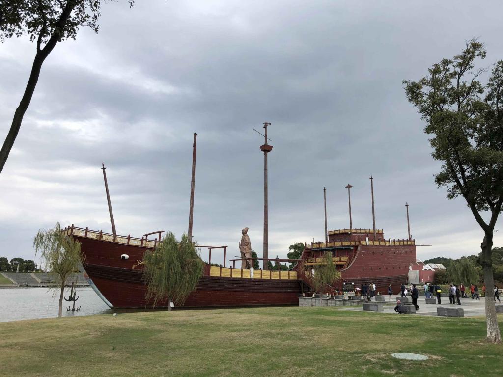 第二站,老师们来到了郑和公园。公园的建筑主要还原了郑和船队远洋的历史文化,并融入现代设计理念,建有十一座山体,由主入口广场、音乐喷泉、郑和铜像、郑和宝船、郑和纪念馆、郑和七下西洋历经的异域风情等组成。郑和公园内最醒目、最具有纪念意义的景点是郑和纪念馆,它以郑和精神为核心,从不同视角展示郑和航海文化,突出反映郑和七下西洋的起锚地——太仓的特色。