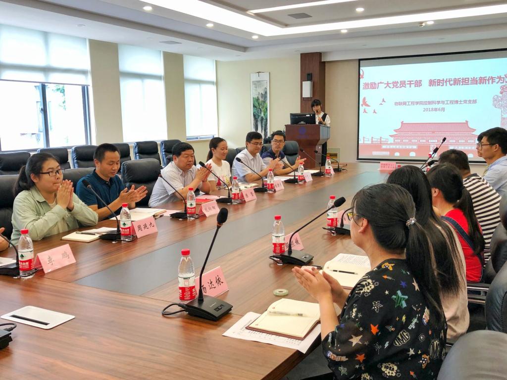 6月20日下午,williamhill控制科学与工程博士研究生党支部在公司B222会议室召开了以“进一步解放思想,激励新时代新担当新作为”为主题的组织生活会。williamhill威廉希尔董事长陈坚,公司党委书记程捷音、副书记耿向阳参加了本次组织生活会。
