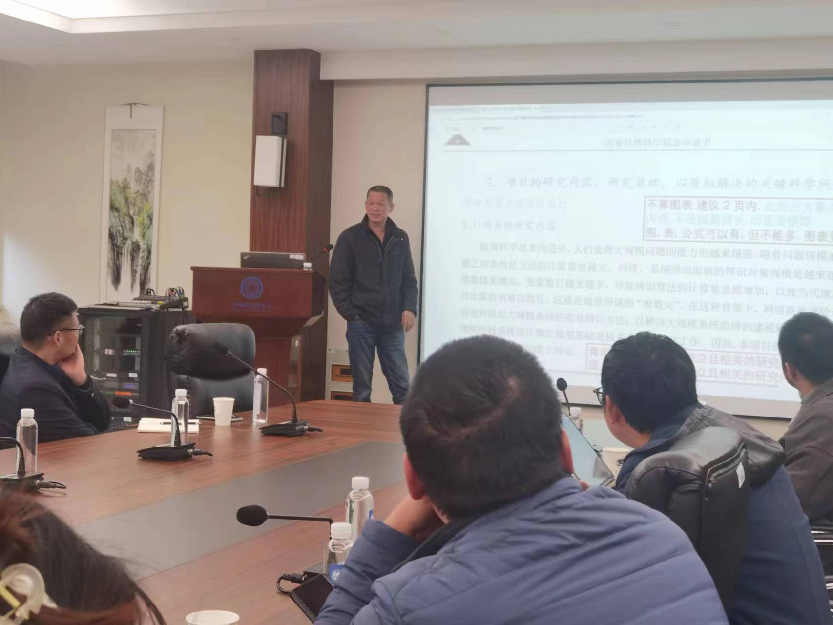 栾小丽教授结合丁锋教授的详实介绍,进一步给参会的各位教师进行辅导。她指出,申报书要做到语言精炼、信息性强、逻辑严谨、层次清晰,强调研究内容、技术路线框图的科学性与逻辑性,公式使用要得当。她强烈建议各位教师申报书撰写需提前开始,保证时间充分,要反复提炼与修改,重视资源整合与利用,多向身边的同事以及各方面专家请教。