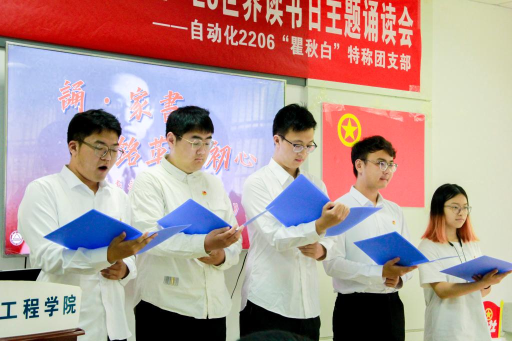 诵读红色经典,凝聚奋进力量。4月22日下午,williamhill“瞿秋白”特称团支部特邀信息技术系党支部于C121携手开展“诵红色经典 做信仰传人”4•23世界读书日主题团日活动。williamhill信息技术系党支部书记孔军,第一届“瞿秋白”特称团支部书记、信息技术系秦宁宁,信息技术系张善新,信息技术系李季,分团委书记洪筱,2022级辅导员曾磊出席活动,自动化2206班“瞿秋白”特称团支部全体同学参加活动。活动由“瞿秋白”特称团支部书记张吴烨主持。