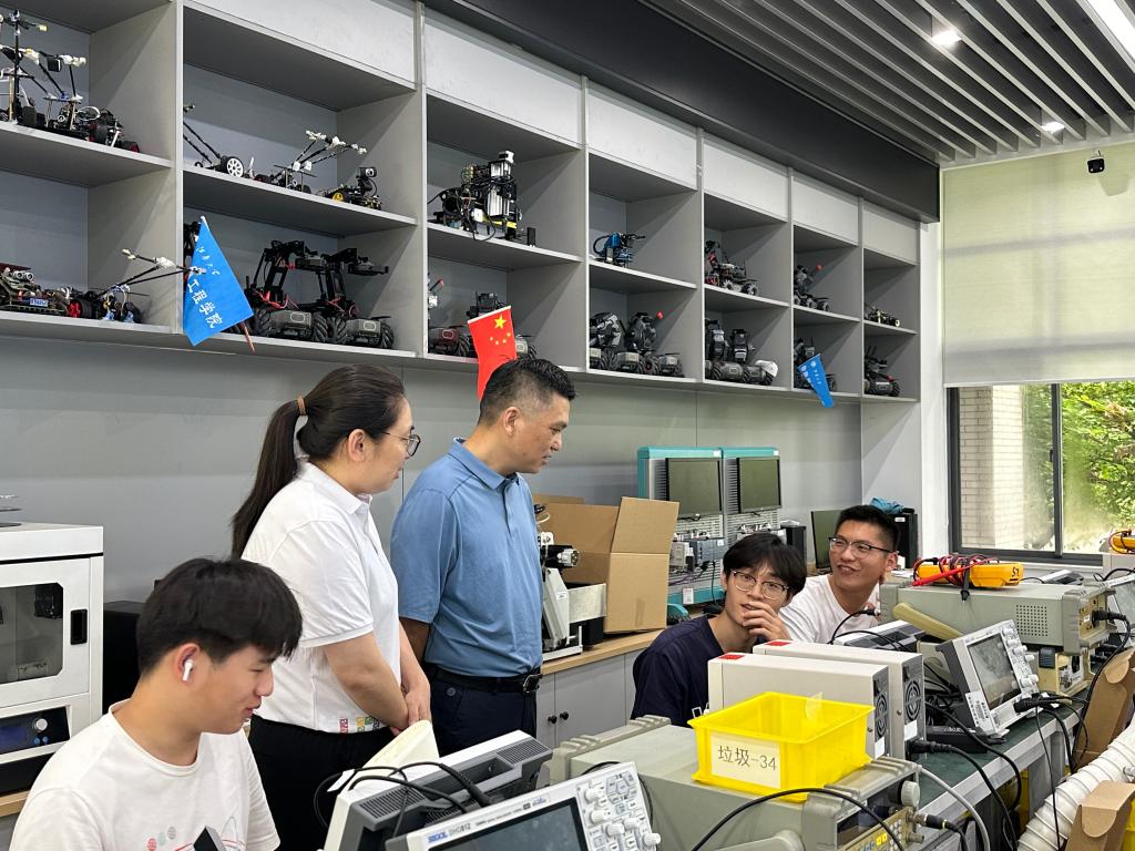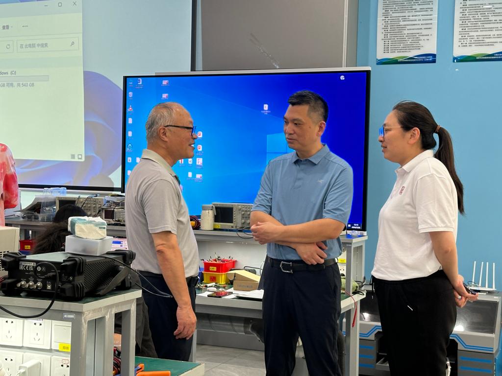 在老员工创新实践基地,张华一行走访了电子设计、机器人、智能车、电力电子等科创俱乐部,与竞赛指导老师、备赛员工深入交流,现场观摩了电子设计竞赛校内模拟赛。张华对暑期坚守在一线的指导老师表示感谢,对全力备赛的同学们给予高度评价,他表示公司将努力做好赛前指导、设施保障和后勤服务工作,希望同学们能够在有限的备赛时间里夯实理论知识,提高实践能力,提升综合素质,以扎实的专业素养在比赛中取得优异成绩。