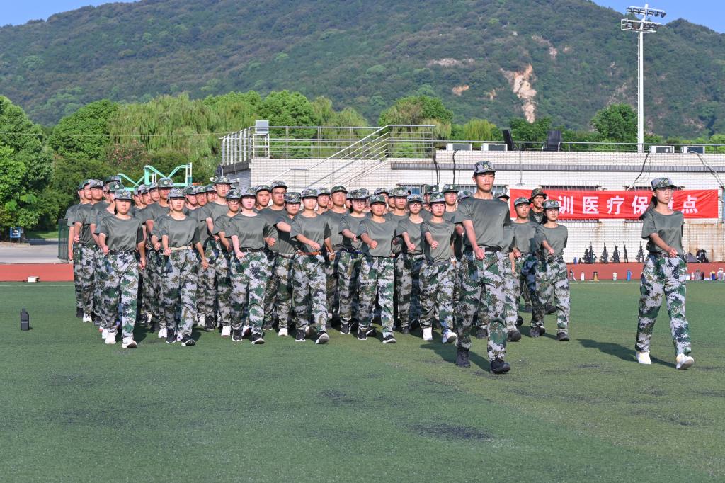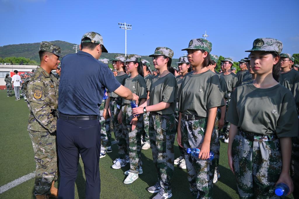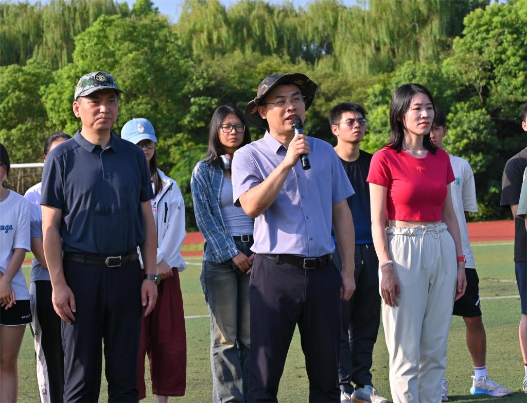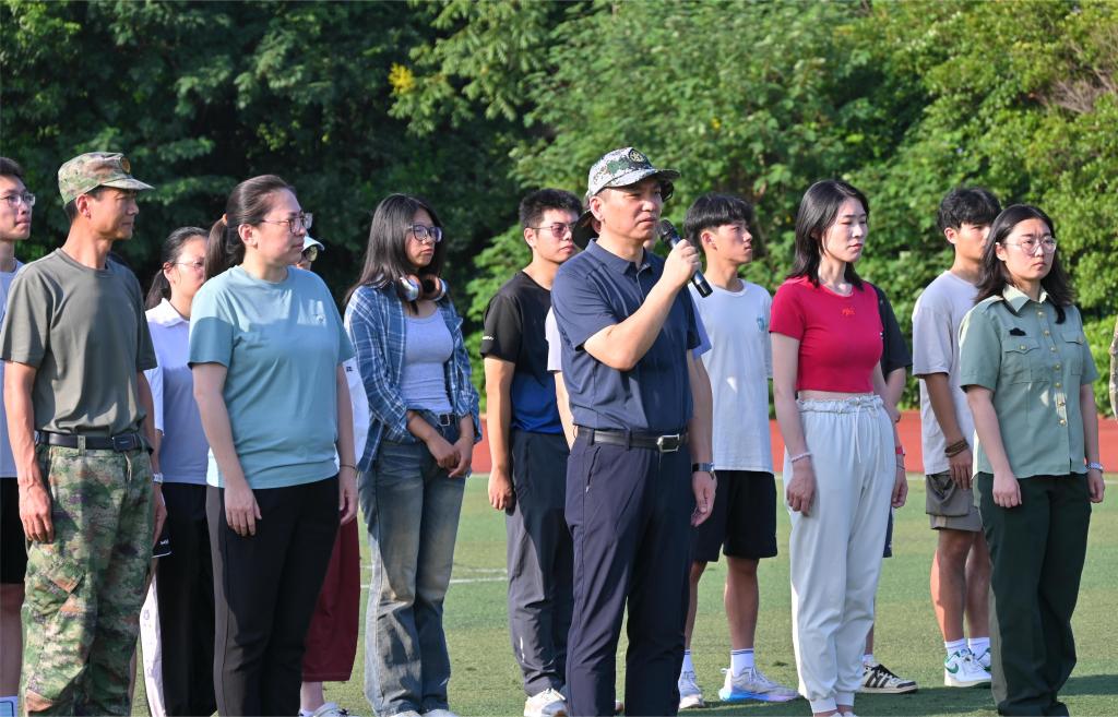 俞立峰代表公司对物联学子表示慰问与肯定,鼓励全体参训人员继续保持良好的训练状态,坚持高标准、严要求,积极投入军事训练,磨炼意志品质和身体素质,期待大家在不久后的全校军训成果汇报中展示丰硕成果。