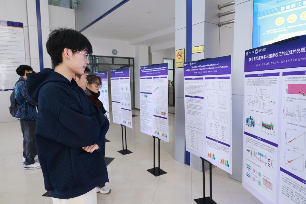 此外,公司大厅还通过高质量的墙报展示了部分研究生的科研成果,吸引众多同学驻足观看并热烈讨论。