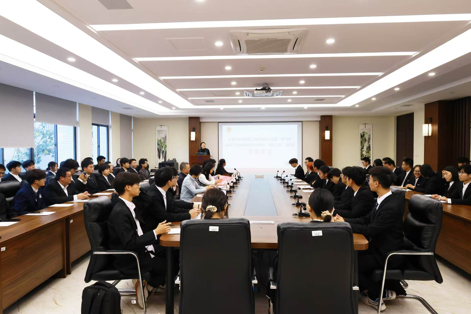 院员工会团学事务部负责人刘淇从破冰之行、梦想启航、专业领航、职业导航四个方面介绍训练营的具体安排。自动化2404班的邱梦馨作为第十五届训练营营员代表发言,号召营员们珍惜平台、踊跃参与、认真学习,在实践中突破自我、在学习中升华品格。