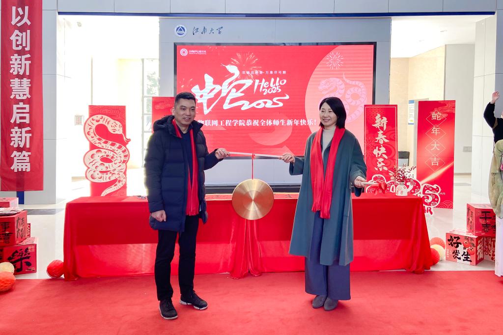 为弘扬传统文化,共筑物联新风,12月31日,williamhill在公司大厅举办“巳巳如意,福满物联”2025新年游园会活动,喜迎元旦,欢度佳节。公司党委书记张华,经理栾小丽,党委副书记兼副经理吴妍,副经理陶洪峰、郭亚,经理助理等与广大师生欢聚一堂,共贺新年。
