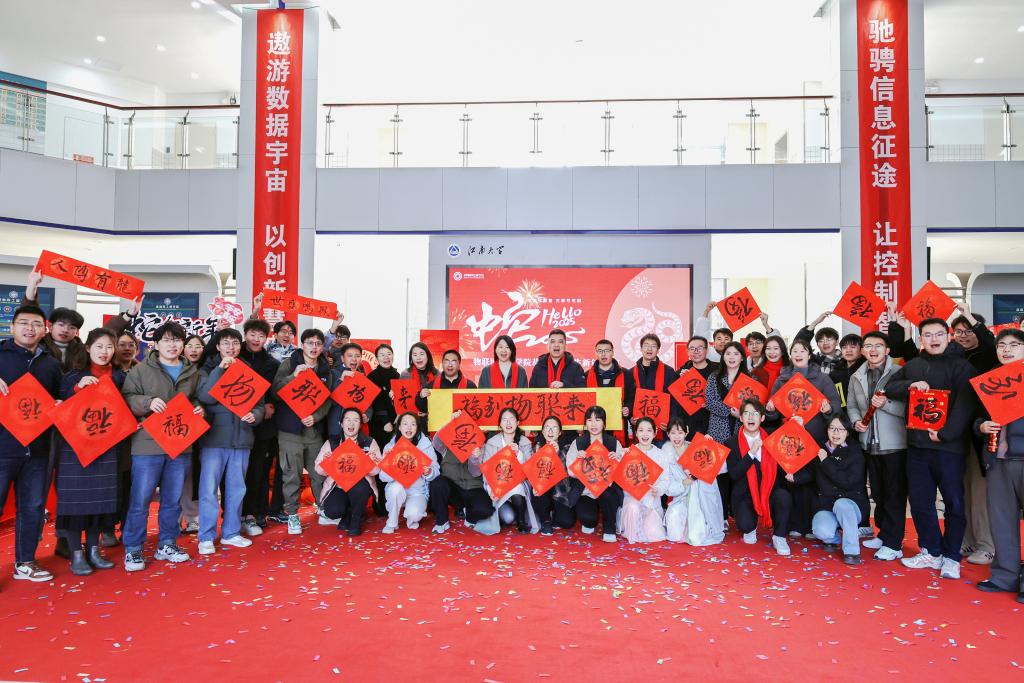 经过精心筹备,本次活动内容新颖有趣,形式丰富多彩,吸引了公司广大师生参与。院领导深度参与各个活动,同师生们互动交流,一同欢笑。墨香福至,写“福”字活动中,大家DIY书写属于自己的福字;一撇一捺,一点一横,寄托着对新年的诚挚祈愿。箭矢穿云,投壶大挑战中,师生们手持箭矢投壶,精准入壶,在物联大厅中响起阵阵掌声与欢呼。气球爆彩 ,爆破比拼里,同学们密切配合,气球在欢声笑语中爆裂,传递着“福满物联”的喜悦。谜海藏福,谜语展板前挤满了参与解谜的同学们,在谜语里感受新年的欢乐氛围,开启聪明的新一年!一系列丰富多彩、趣味盎然的游戏和互动活动,不仅让师生们深切领略到传统文化的独特魅力,更在欢声笑语中拉近了师生间的距离,增进了彼此的情谊。