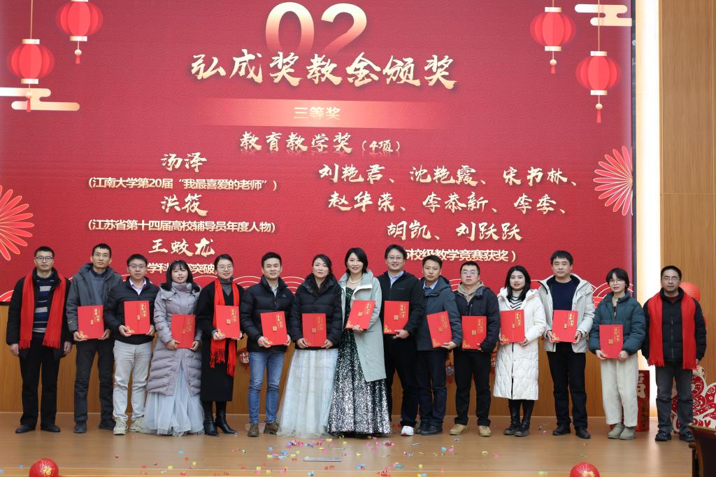 随后,进行“弘成奖教金”表彰颁奖。公司领导为2024年度“弘成奖教金”获得者颁发荣誉证书,表彰了在党建思政、公司产品、校园文体、管理服务等工作中涌现出来的先进集体和优秀个人。这是对获奖教师和集体的努力与成就的充分肯定,也是对全院教师爱岗敬业、为人师表、无私奉献精神的崇高赞誉,激励大家在新的一年继续追求卓越。