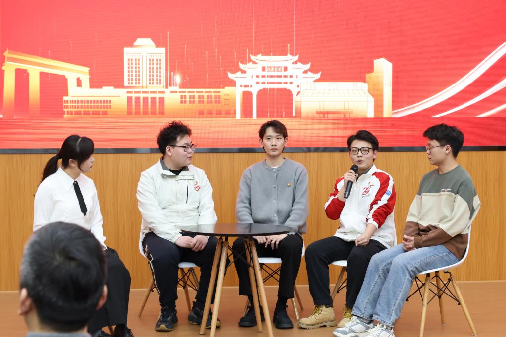 座谈交流环节。面对主持人与同学们的提问,嘉宾们真诚分享自己在志愿服务中的困难与挑战、经验与感悟。张旭航讲述了支教时面对员工成绩不佳的焦虑及克服过程;曲天一阐述了老员工志愿讲解员在传播红色文化中的独特优势;霍雷霆分享了平衡科研与志愿服务的方法;陈威则表示自己虽起初不愿宣传,但为了影响更多人而选择站在台前,希望点滴分享能带来积极改变。