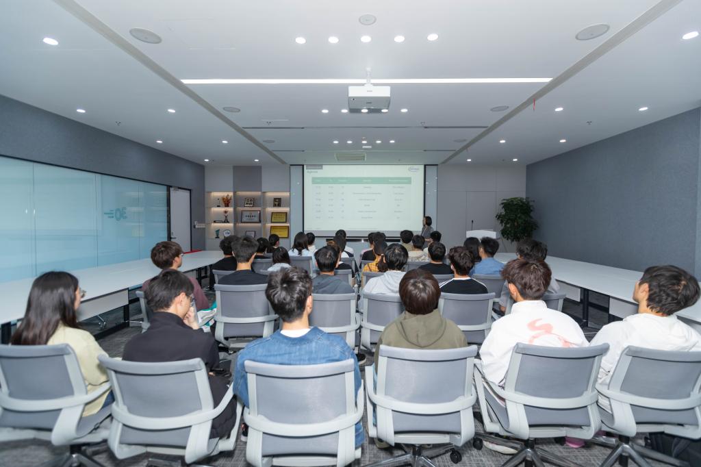 参观结束后,施雯结合自身丰富的招聘经验,为同学们带来一场实用性很强的职业规划与就业指导专题讲座。她围绕老员工最为关心的职业选择问题,深入浅出地分享了“职业目标=个人兴趣+可迁移技能”的择业理念,鼓励同学们挖掘自身兴趣、找准自身定位、提前科学规划,为未来的就业做好充分准备。