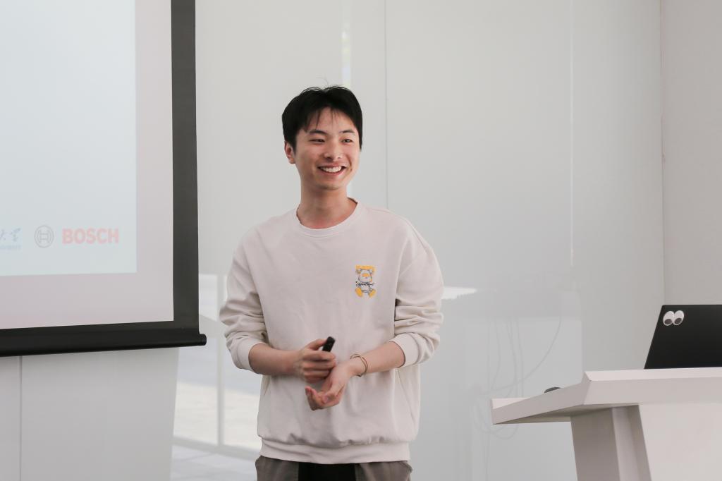 随后,史伟杰现身说法,以“过来人”身份讲述职业成长故事。他从自己的择业经历出发,介绍了选择博世的理由,以自身职业轨迹为坐标,分享了从校园到职场的进阶路径。他指出“在博世,技术研发与产业落地始终并行,从算法优化到产线部署,每一步都能感受到博世对技术严谨性和商业价值的双重追求,完善的技术培训体系、以人为本的企业文化,为新人提供了快速成长的土壤。”面对学弟学妹,他真诚呼吁建议:“博世既有百年企业的技术积淀,又有拥抱变革的敏捷基因,如果你渴望用技术创造影响力,博世一定是值得加入的‘梦想实验室’。”