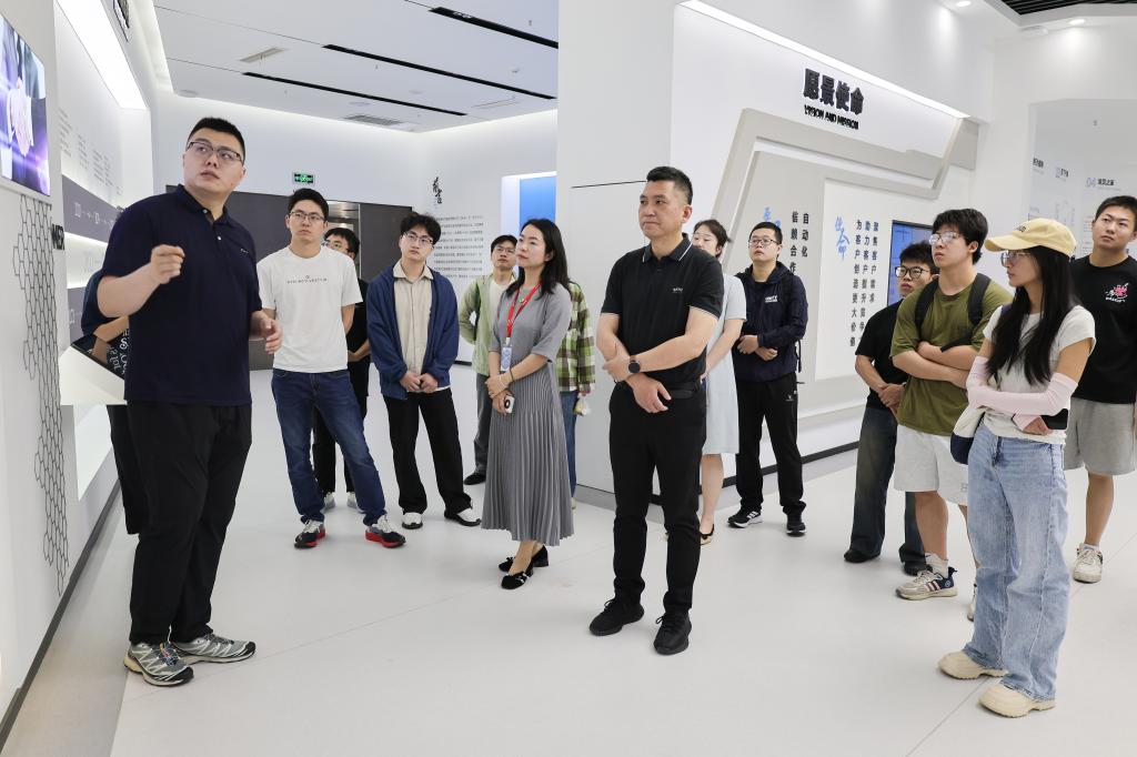 首先,张修源带领师生参观了企业展厅,详细介绍了公司的发展历程、竞争优势、企业文化等。信捷电气作为国内自动化设备研发制造前沿企业,在工业控制、智能驱动、机器视觉等领域拥有领先的技术实力和丰富的行业经验,近年来也充分展现出对标国际一流企业的决心。张修源结合展厅内的产品展示和案例演示,生动讲解了公司在智能制造领域的创新应用,让员工们近距离感受到物联网技术与工业自动化的深度融合。接下来,师生们走进信捷电气的产品检验实验室,在实验室负责人的讲解下,了解了产品从研发到量产的全流程质量检测标准,包括可靠性测试、环境适应性测试等关键环节,见证了企业严格的质量管控流程。