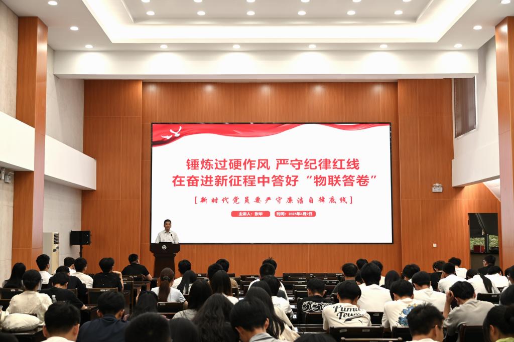 张华以“锤炼过硬作风严守纪律红线在奋进新征程中答好‘物联答卷’”为主题,从深化思想认识、对照中央八项规定精神、时刻保持清醒头脑、敢于挺膺担当四个方面与毕业生党员展开深入交流。他指出,毕业生党员要坚持自觉贯彻中央八项规定精神,始终以党的纪律为尺,锤炼自身工作作风,把学习教育成效转换为自身实际行动,将党的政治纪律内化于心、外化于行。同时,他强调,毕业生党员未来无论走向何方,都要牢记自身党员身份,坚守初心使命,在本职岗位上发挥先锋模范作用;要把个人理想融入国家和民族的事业中,到祖国和人民最需要的地方去发光发热,以物联学子的青春力量助推中国式现代化建设。