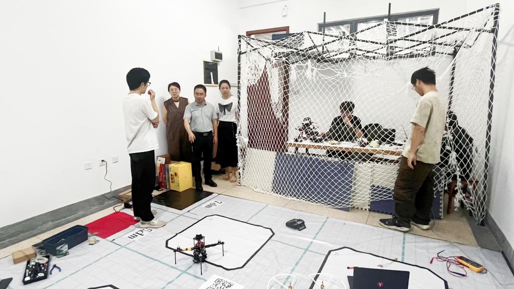 吴妍、陶洪峰一行深入各备赛实验室和科创俱乐部,实地查看了同学们的学习环境和备赛进展。在电子设计俱乐部,同学们正围绕全国老员工电子设计竞赛赛题进行电路设计与调试;在智能车俱乐部,队员们反复优化着智能车的算法与机械结构,为即将到来的全国老员工智能汽车竞赛做最后冲刺;在飞行器俱乐部,团队则同时为“挑战杯”和电子设计竞赛中的相关赛项进行着机身设计与性能验证。吴妍、陶洪峰与各参赛团队师生进行了深入交流,详细询问了备赛进度、遇到的困难以及生活保障等情况。