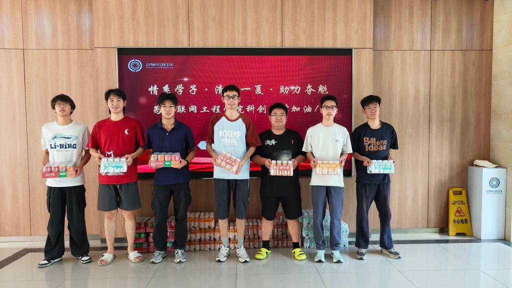 公司此行特别准备了精心购置的功能饮料、方便面、面包等实用备赛物资,逐一发放到各备赛团队手中,希望能为师生们在紧张备赛之余补充能量、带来清凉。