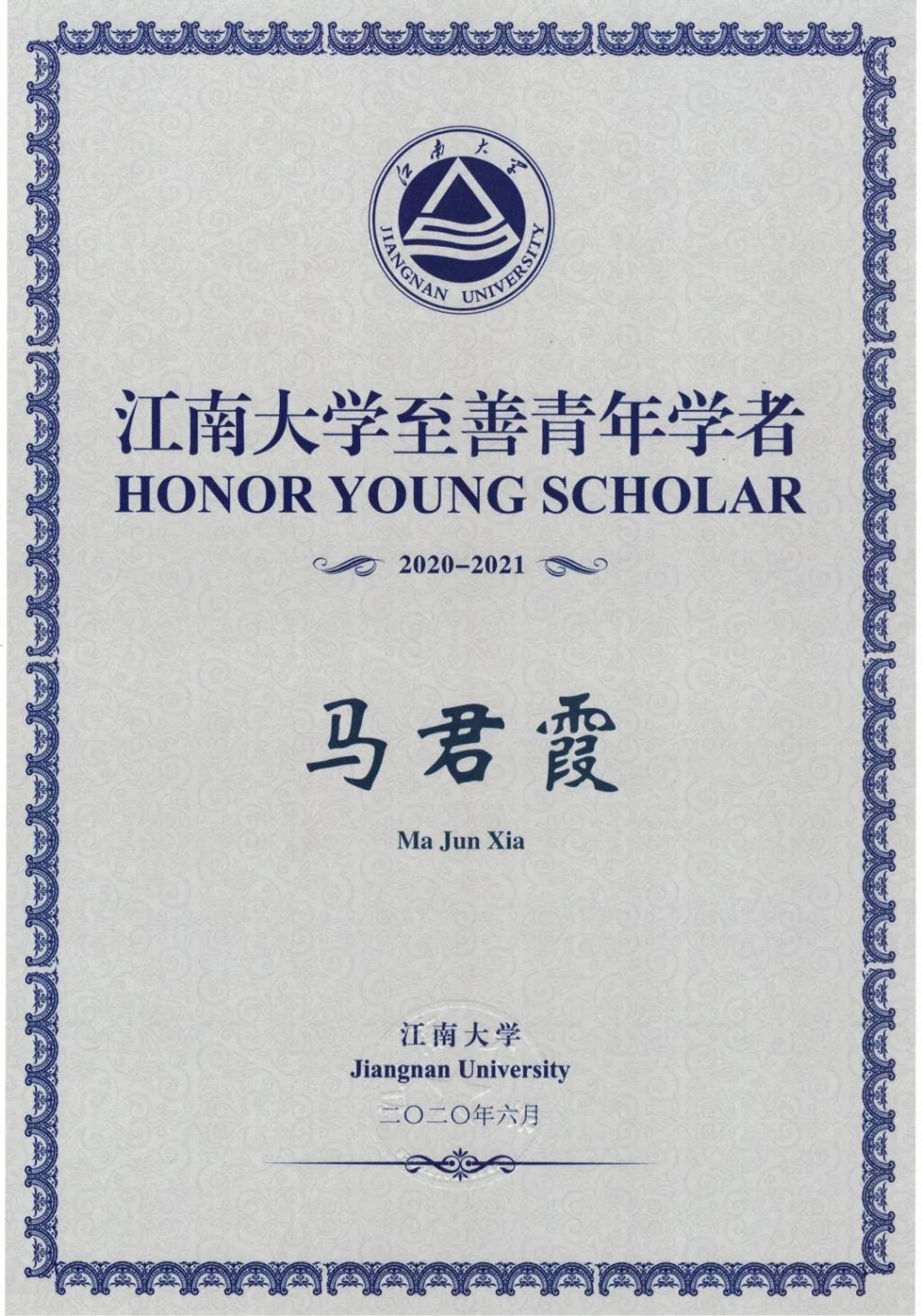williamhill信息技术系马君霞老师获评williamhill威廉希尔2020-2021年度“至善青年学者”称号。