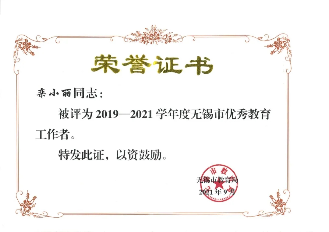 无锡市优秀教育工作者