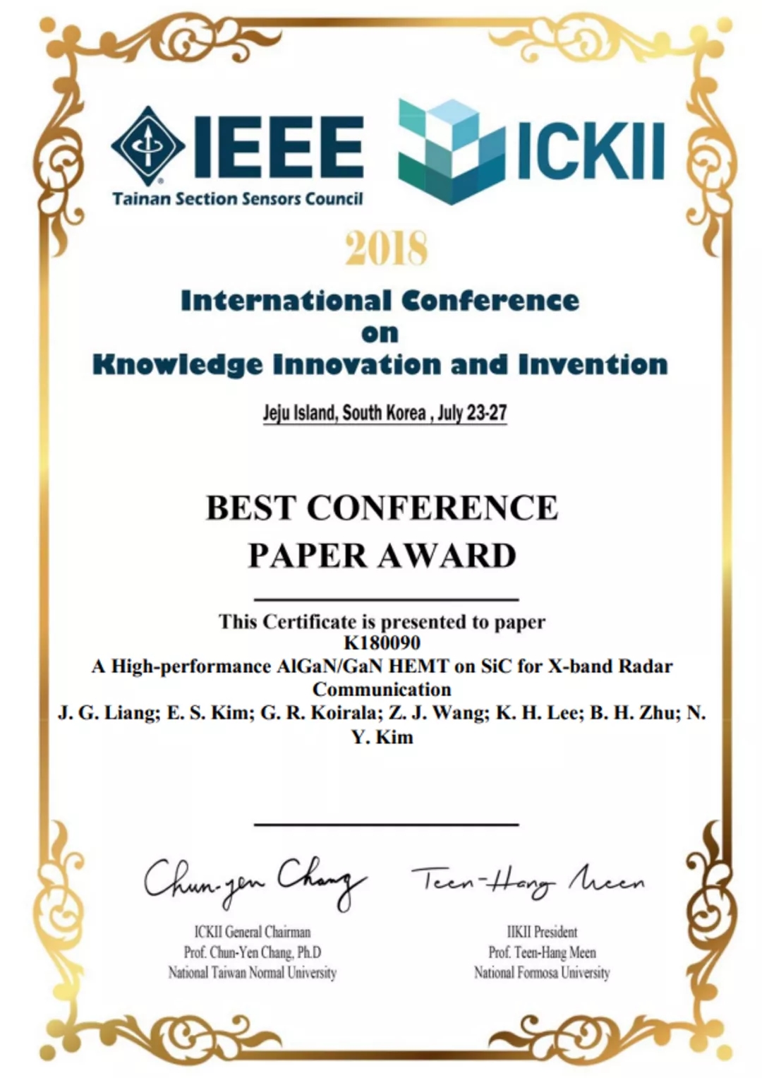 IEEE ICKII 2018 最佳论文奖
