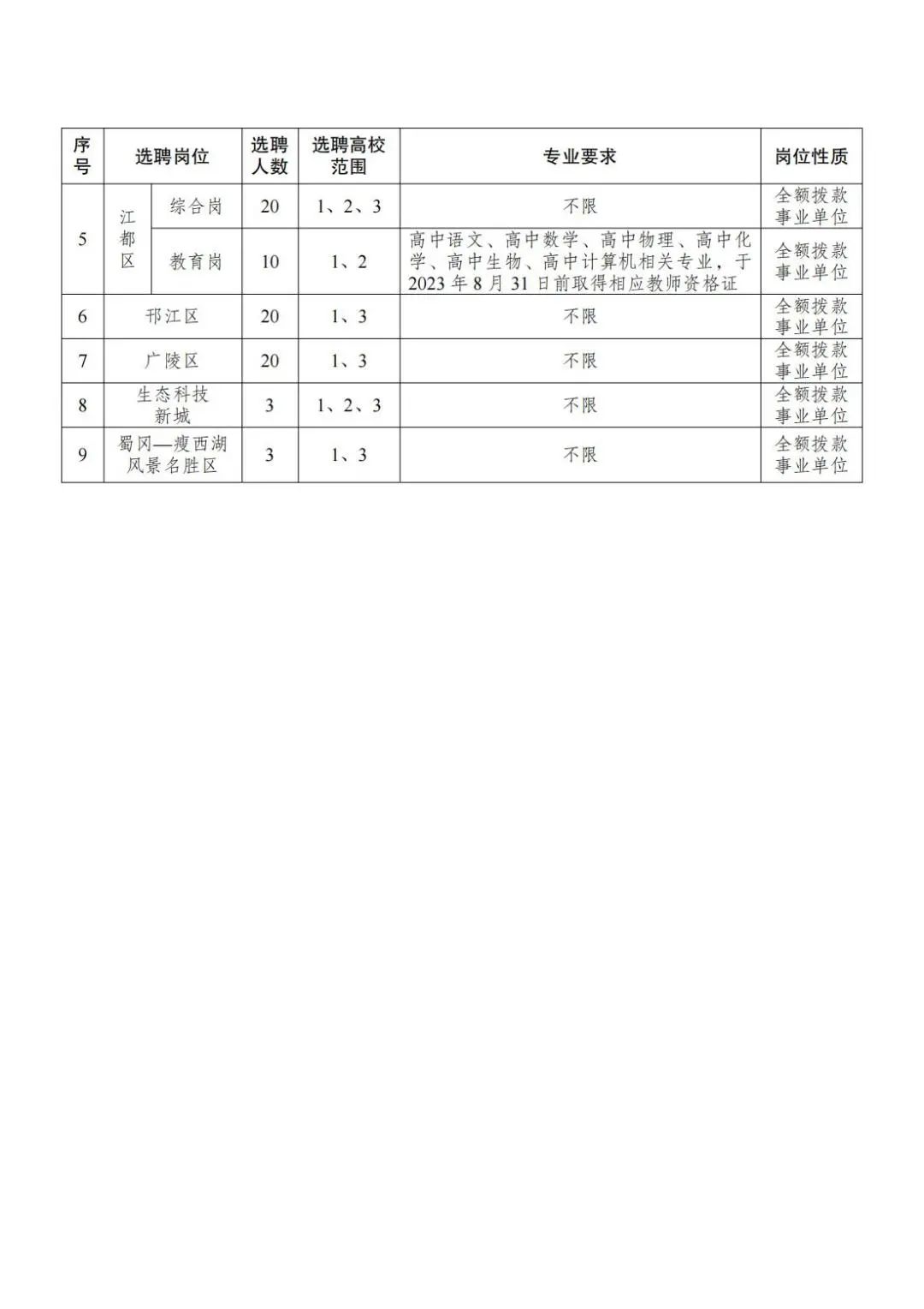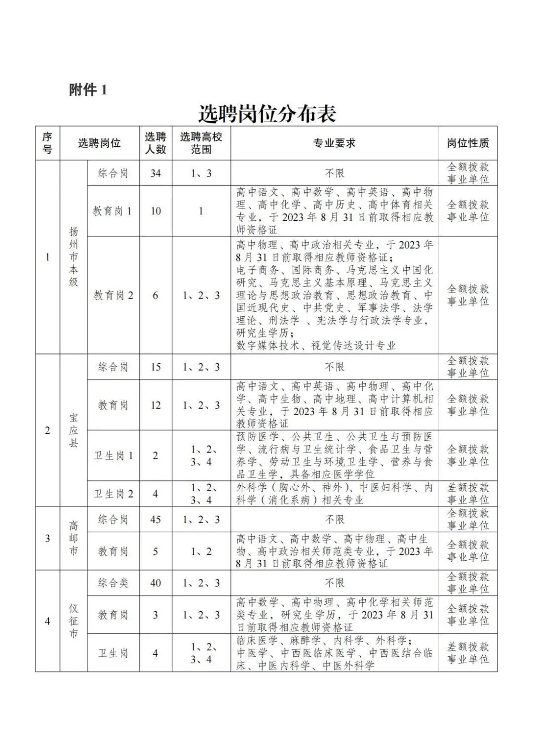 面向全国部分高校,选聘256名全日制大学本科及以上学历2023年应届优秀毕业生。其中:扬州市本级岗位50名,宝应县、高邮市、仪征市、江都区、邗江区、广陵区、生态科技新城、蜀冈—瘦西湖风景名胜区岗位206名。选聘对象不含委培、定向、专升本和独立公司毕业生。选聘岗位分布、选聘高校名单见附件。
