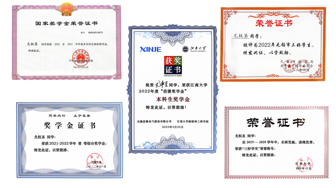 持之以恒地学习为他带来了成绩上的长足进步。在大学三年里,他的专业排名从第23到第11,再从第6到第2,进步是他的主旋律。“日拱一卒,功不唐捐”,综合测评第一、国家奖学金、一等综合奖学金、无锡市三好员工是他努力的证明。