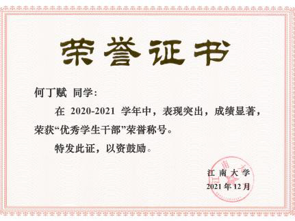 在书卷里精耕细作,为学之路上,他因为努力所以优秀。勤恳为学,是何丁赋的特点之一,更是他取得一系列瞩目成绩的制胜法宝。对待学习的态度,他是无比真诚的,初入大学的他并未能够很快明确自己的发展之路,但心中总有一团属于时代青年的奋进之火,时刻催促着他再努力一些!这为他以后锚准自身定位埋下了伏笔。在他看来,自己的万丈志向高楼需要无比强大坚实的基础去承载,更需要精心打磨的“砖瓦”去铺设。带着这样端正的态度,他开始了自己“早迎晨曦去,披夜幕而归”的规律学习日常。课前课后科学的学习方法,令他面对考试从容不迫、面对科创实践中的难点心有静气,碎片化的时间被他合理调整利用,常人一带而过的细碎知识他要认真咀嚼,专业问题他会广泛查阅资料刨根问底,长期的科学式宽领域学习法,让他的知识版图远比一般人要详细和广袤。出色的学习成绩、端正的学习态度、夸张的学习效率很快引起了同学们的侧目,“何老师”这一称谓是对他学习委员工作的肯定,更是他连任四年这项工作的底气和原因所在!他乐于解答同学们的“疑问三连”,个人的“学习魅力”和“学者特质”更是影响着身边的同学,整体带动了班级的学习之风向好向上发展。最终,他所在的班级获评江苏省“先进班集体”、williamhill威廉希尔“先进班集体标兵”,并以22人升学、超过60%的深造率打破公司升学纪录。