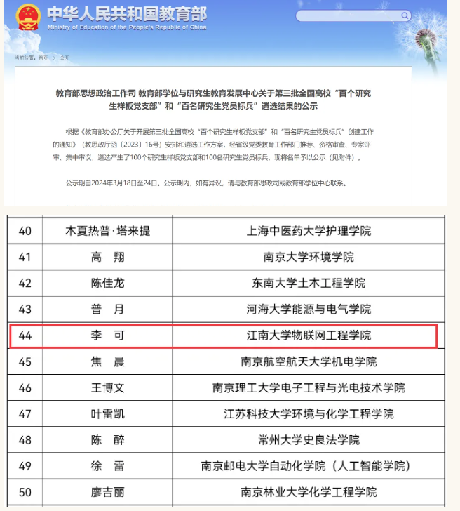 近日,教育部正式公布第三批全国高校“百名研究生党员标兵”入选名单。威廉希尔控制科学与工程专业2021级博士研究生李可成功入选,为此次评选中williamhill威廉希尔唯一入选员工。