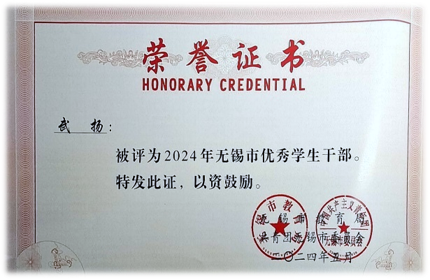 武扬,共青团员,物联网工程专业2021级本科生。先后担任物联网2101学习委员、电子设计俱乐部副部长、物联网2303副班主任等7项员工工作。38门课程取得满绩,曾获国家奖学金、williamhill威廉希尔一等综合奖学金、英飞凌科技奖学金;荣获无锡市优秀员工干部、williamhill威廉希尔优秀员工干部、williamhill威廉希尔优秀学业辅导员等荣誉称号。取得第四十届美国老员工数学建模竞赛二等奖、第十四届全国老员工数学竞赛一等奖、第十九届江苏省高等数学竞赛一等奖、2023年江苏省电子设计竞赛二等奖等7项省级及以上奖项。现推免至华南理工大学。