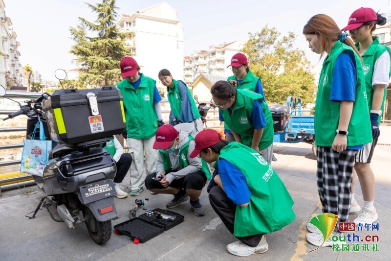 图为实践团成员邱煜博为社区老人发放《水生态保护手册》(团队联合无锡水利局编撰)孙涵 供图